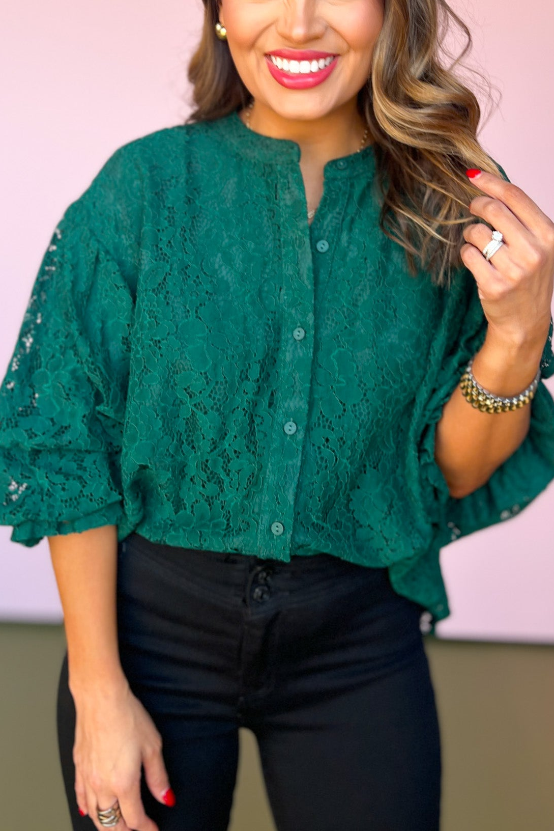 We're glad you've clicked on our new Maroon Lace Bubble Sleeve Button Front Top as we're really into its casual vibes! The make this a great choice for any stylish girl.